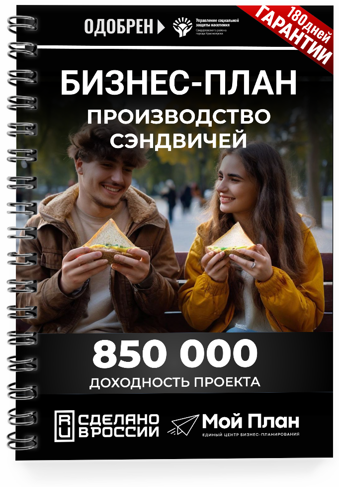 Наш бизнес-план включает готовые финансовые расчеты, детальное описание производственного процесса, а также стратегию продвижения ваших аппетитных сэндвичей. С нами вы сможете сэкономить более 75% бюджета, и вероятность одобрения социального контракта повысится до 100%. Документ будет адаптирован под ваш регион и сократит время на подготовку всех необходимых документов с 10 дней до всего 3 часов.